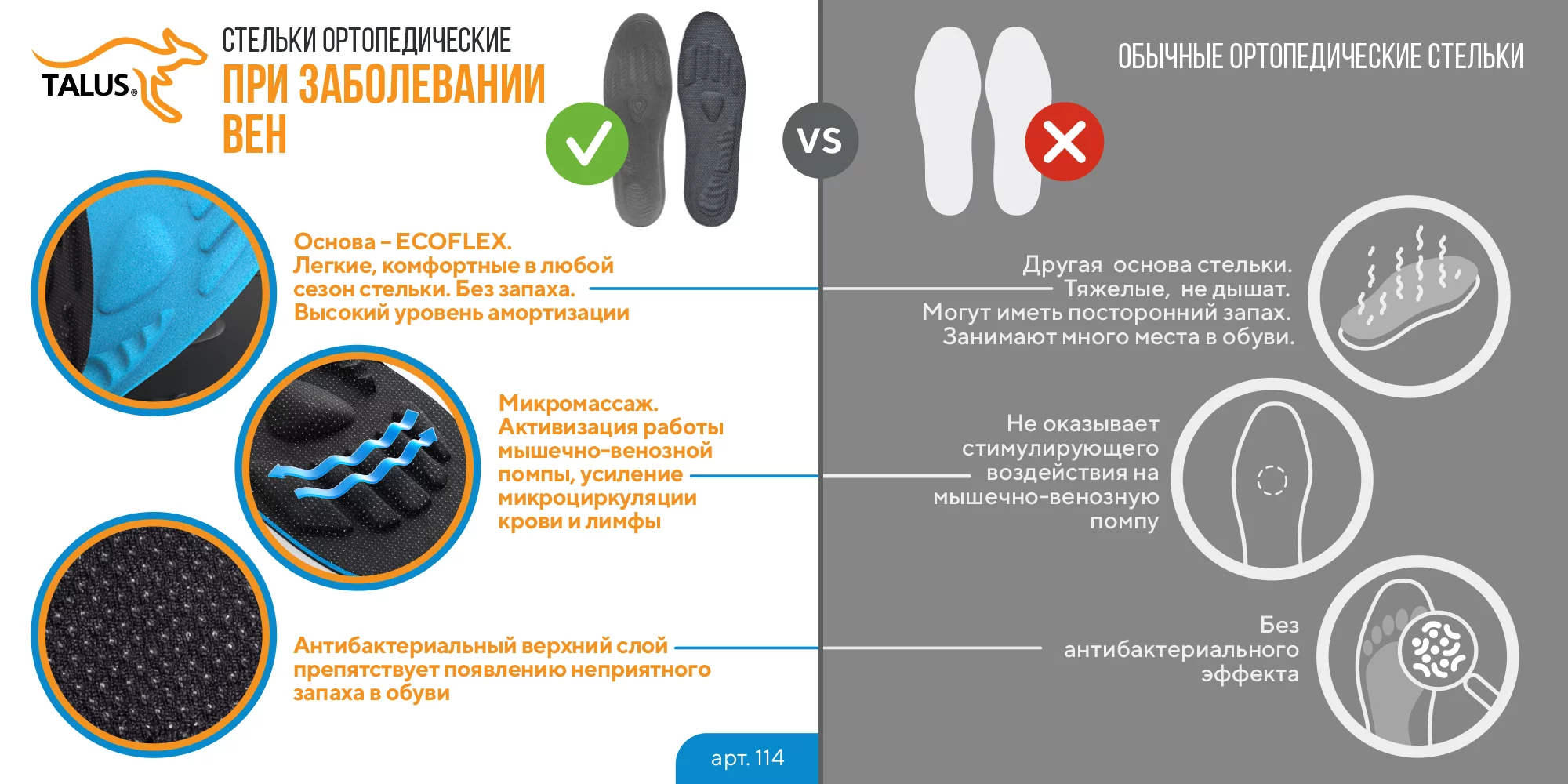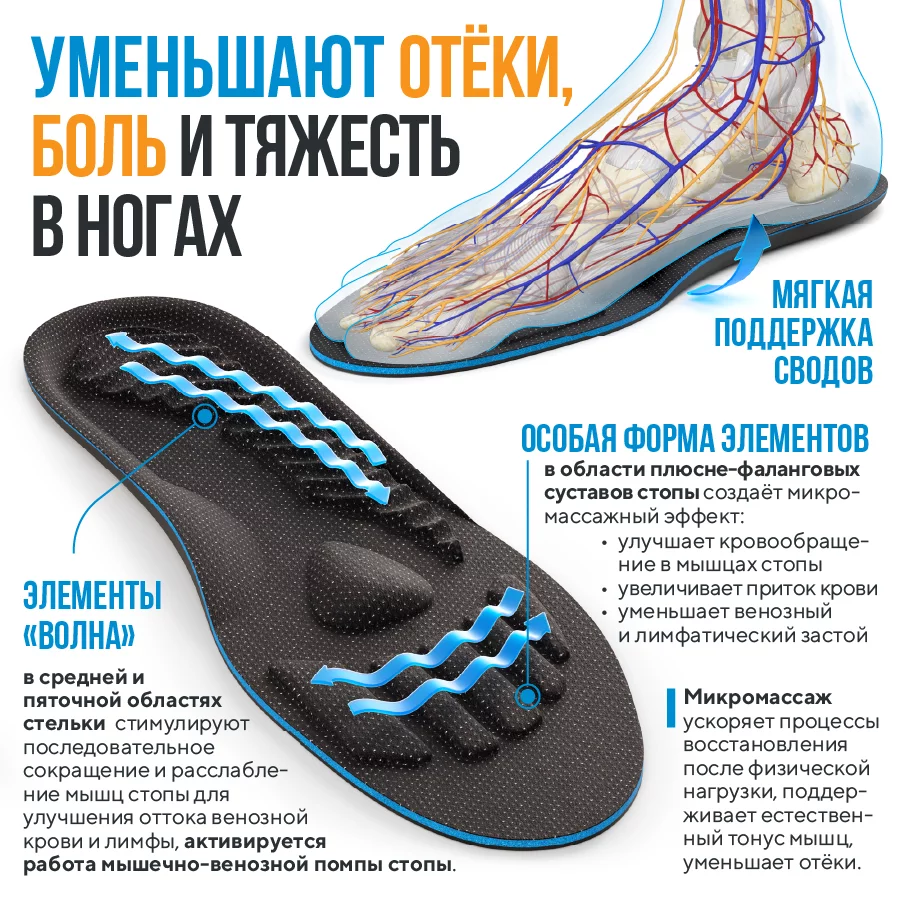 Трехслойная стелька из ECOFLEX с рельефными зонами в области плюсны, продольного свода и пяточной области.