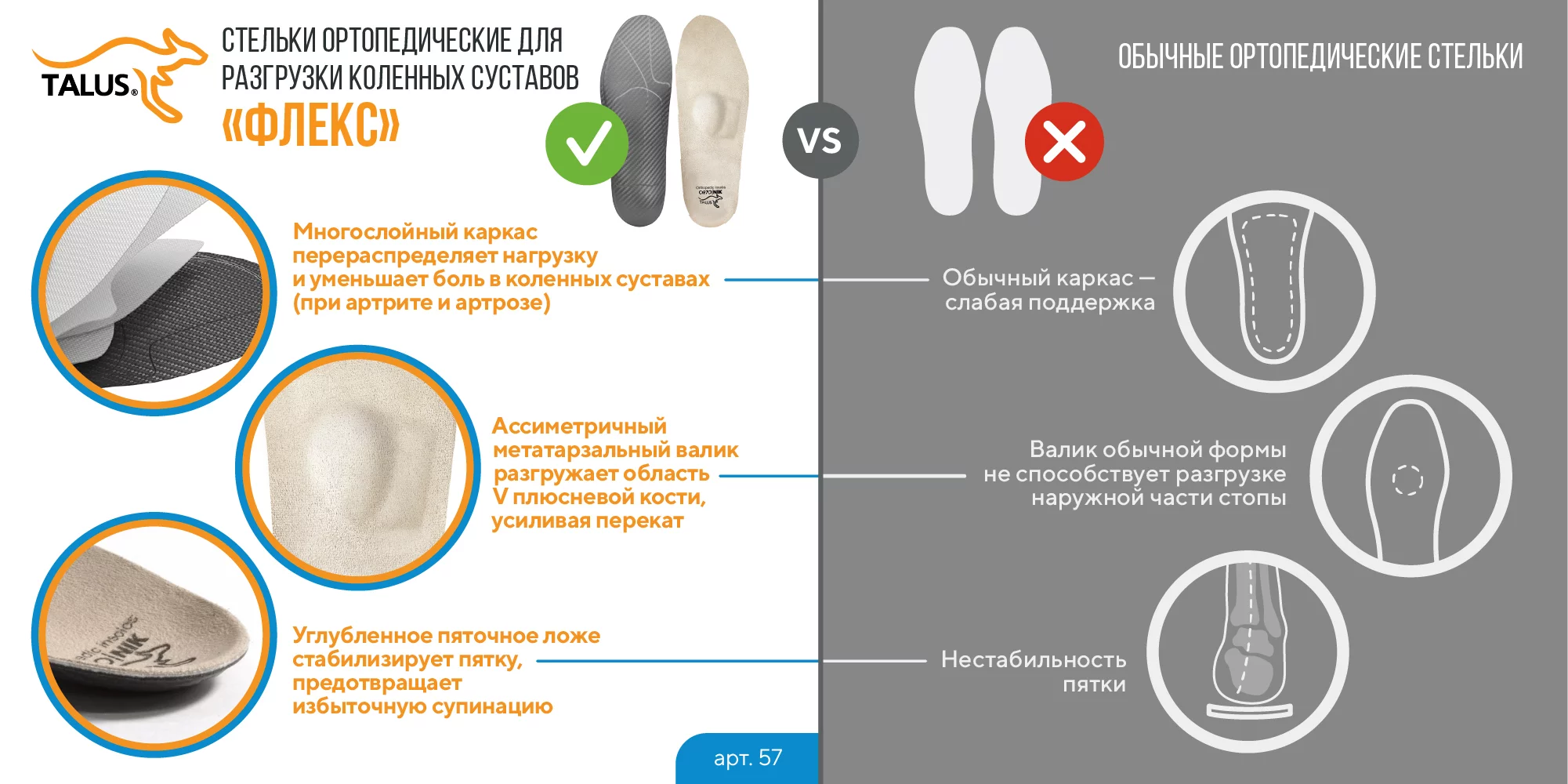 Эффективно восстанавливают естественное положение голени, уменьшают боли и прогрессирование деформаций в суставах ног.